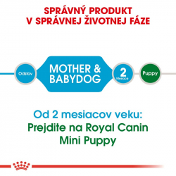 Krmivo ROYAL CANIN Starter Mother & Babydog Mini je vytvorené pre malé psy, ktorých hmotnosť v dospelosti dosahuje do 10 kg. Pre suku počas brezivosti a laktácie – Pre šteňatá v odstave do 2 mesiacov.