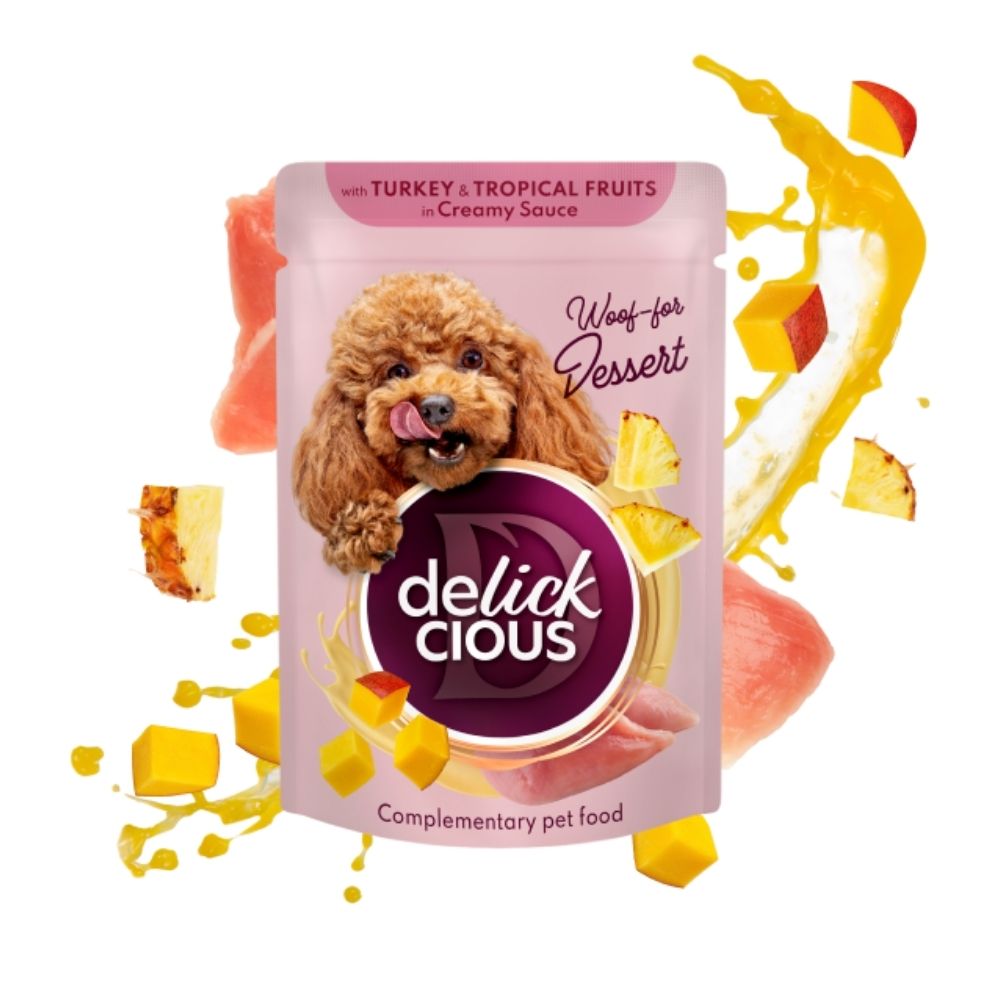 - DELICKCIOUS vločky s mor. a trop. ovocím v smotanovej omáčke. Pre dospelých psov 80g