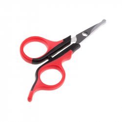 Malé nožnice so zaoblenou špičkou, vhodné na strihanie srsti zvierat v oblasti labiek alebo tváre.