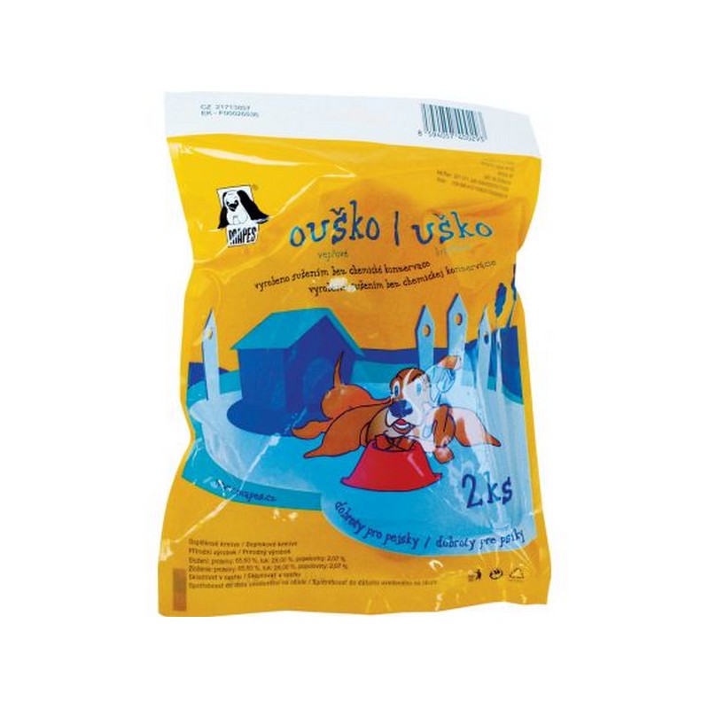 Obľúbená sušená pochúťka pre psy. Bravčové uši ideálne ako prírodná odmena na zabavenie psíka. Balenie 2 ks.