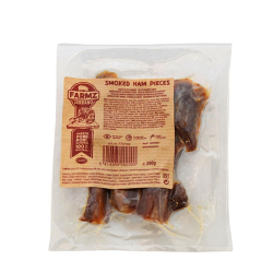 Sušené kúsky údenej bravčovej šunky na hryzenie pre psov. Balenie cca 200 g.
