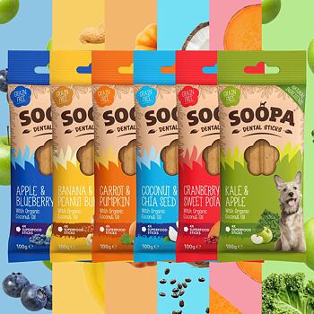 Tieto maškrty sú skvelou alternatívou k bežne dostupným dentálnym pochúťkam, ktoré často obsahujú iba bližšie nešpecifikované rastlinné produkty nízkej kvality a zanedbateľných nutričných hodnôt. Na rozdiel od nich je zloženie Soopa úplne transparentné a výživové hodnoty obsiahnutých zložiek sú pre psa prínosom.